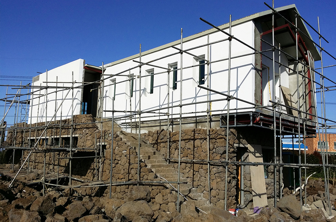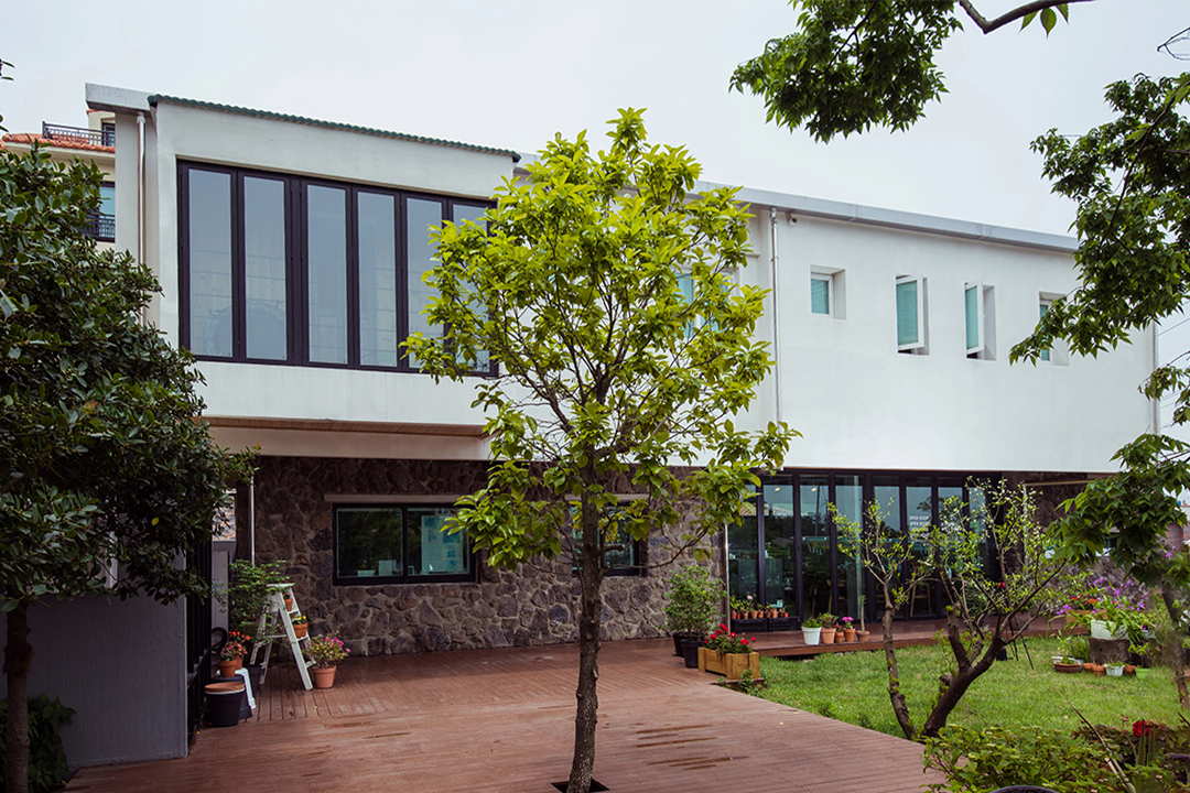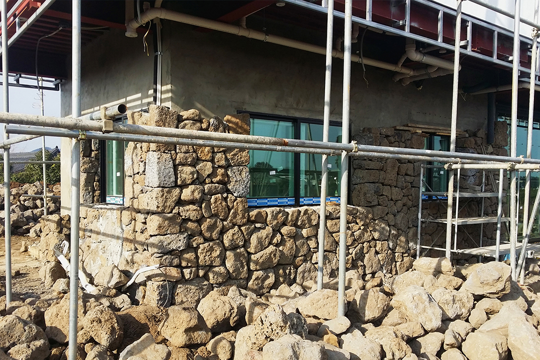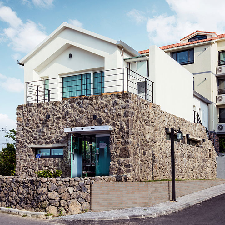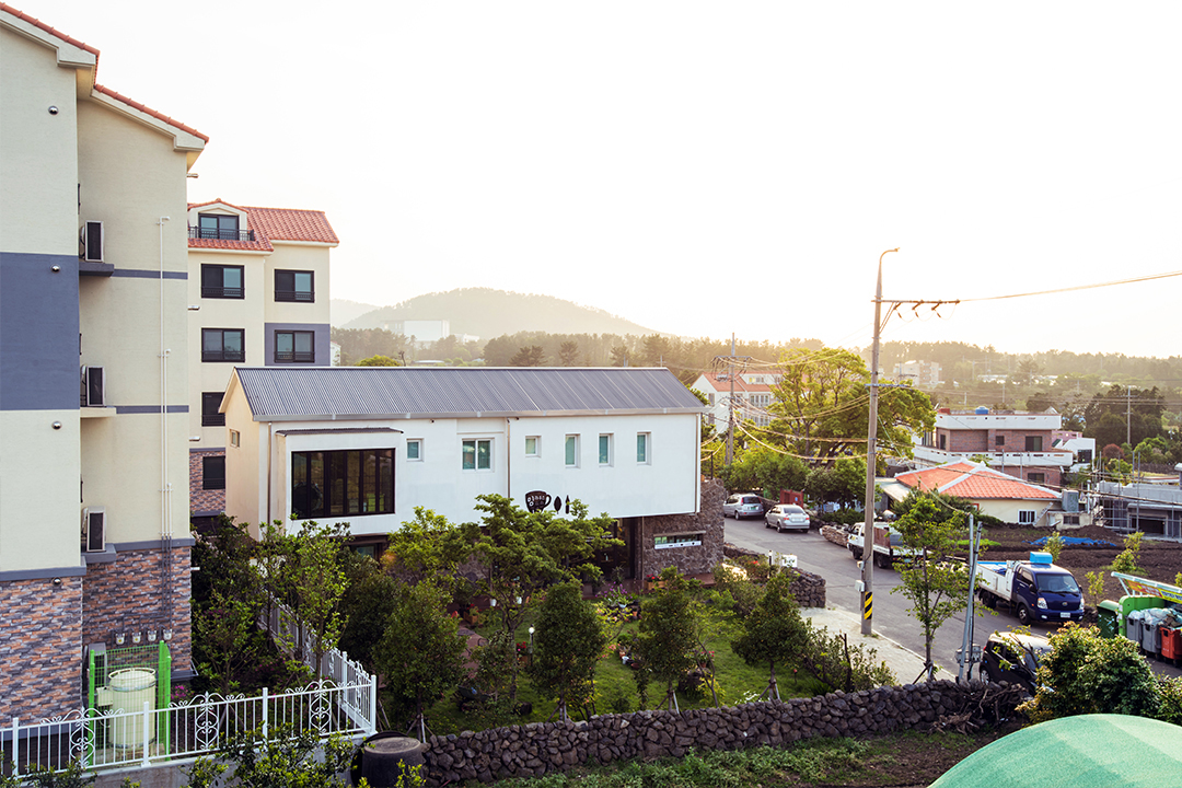화산섬인 제주는 특유의 자연과 경관을 가지고 있다. 사람들은 돌과 바람이 많은 척박한 자연환경을 극복하며 삶을 일구어 왔고, 특히 섬이 탄생하면서 만들어진 화산석인 현무암을 제주건축의 지역 재료로 활용해 왔다. 서울에서 출판사를 운영하던 건축주는 사업장과 거주지를 제주로 옮기기로 하면서 새로운 삶터를 위한 건물을 짓게 되었다. 건축주는 제주다움을 반영하면서 동시에 마을과 어우러진 건물을 만들고자 했다.