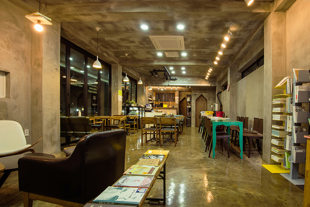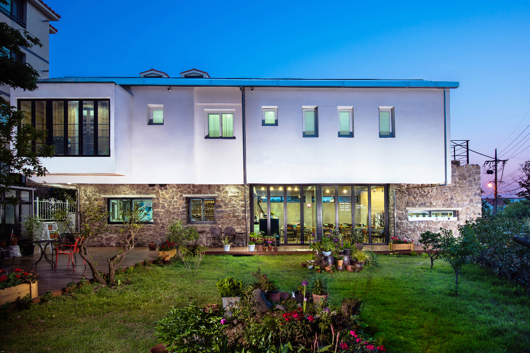1층은 출판사 사무실 공간이자 북카페 공간이다. 외부는 현무암으로 마감하고 실내는 시멘트로 마감하여 동굴같이 차분하면서도 무게감 있는 분위기를 만들었고, 빛이 가득한 외부 정원을 향해 열릴 수 있는 공간을 만들었다. 2층은 건축주가 거주하는 주택 공간이다. 일자형 복도를 통해 위계가 다른 각 실이 연결되었고, 실내외가 순백색 도장이 된 밝은 공간을 마련하였다. 주거공간과 업무공간의 분리를 특히 고려했다. 주거공간은 실내계단을 통해서가 아니라 별도의 현관문과 골목을 돌아가는 외부계단을 통해 업무공간으로 접근하도록 하여, 두 공간을 완전히 독립되도록 하였다.