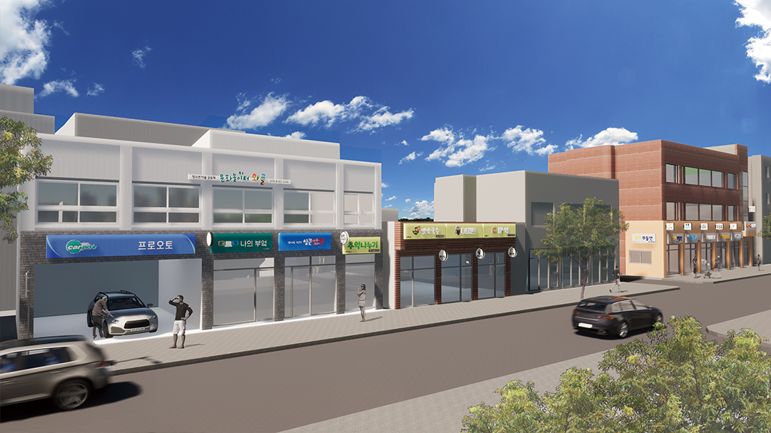 이미 기능을 잃어가는 구도심을 살리기 위해서는 주민과 상인들의 참여를 동반한 노력이 필요했다. 지역 점포주들의 참여의향서를 받아가며 사업에 동참하도록 독려하였다. 가로의 경관개선을 위해 가장 먼저 시행한 것은 오랫동안 방치되었던 노후건축물 외관을 개선하고 상가저층부를 특화시켜 디자인을 적용한 것이다. 그리고 기존의 낡고 규격에 맞지 않는 간판을 주변 환경과 조화를 이루면서 각 업소의 개성을 살린 디자인을 적용한 것으로 교체하면서 건물 외관 리모델링이 진행되었다. 공실이었던 상가에 마련된 북카페, 편집숍, 문화센터, 공방 등 마을공동체 활동공간과 연계하여 다양한 표정을 만들어주는 활력 있는 보행가로로 거듭났으면 한다.