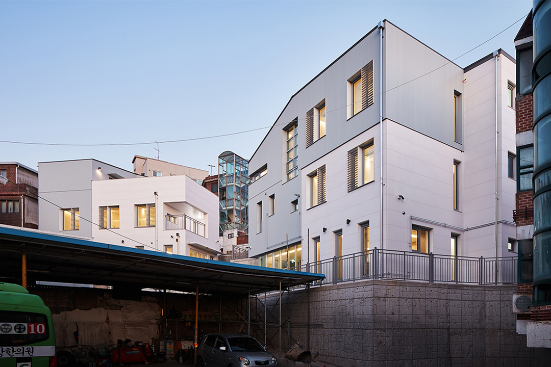 공공에서 추진하는 임대주택이지만 대규모의 획일적인 건물이 아니라 지역만의 고유한 특성을 담아내어 마을과 어울리는 건물을 계획하고 싶었다. 구릉지 마을의 경사지형을 존중하여 마당, 각 층의 테라스, 옥상 등의 다양한 레벨에서 여러 행위와 이벤트가 일어나도록 내⦁외부 공간을 연결시켰다. 그리고 오래된 골목길처럼 우연한 만남이 있고 안부를 물으며 서로의 일상을 얘기할 수 있는 공간을 만들고자 했다. 실내의 개별 방들은 개인의 독립된 공간이지만 공유식당, 모임공간, 창업⦁취미공간, 커뮤니티계단 등은 거주자들끼리 소소하게 소통할 수 있는 공간이 될 것이다.
