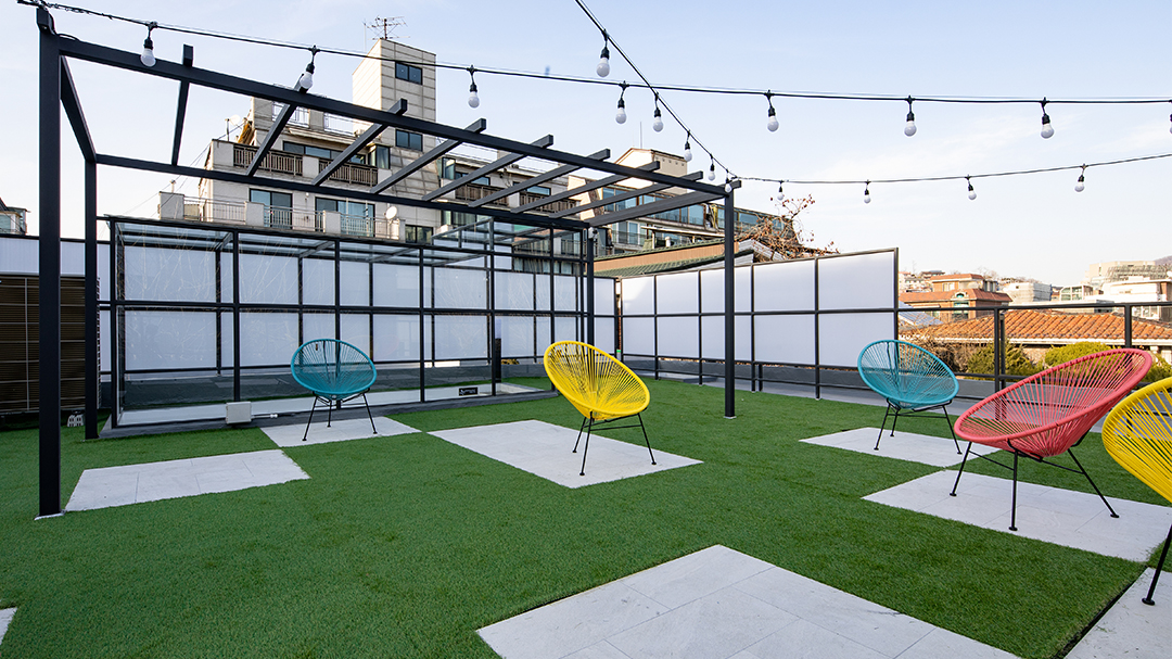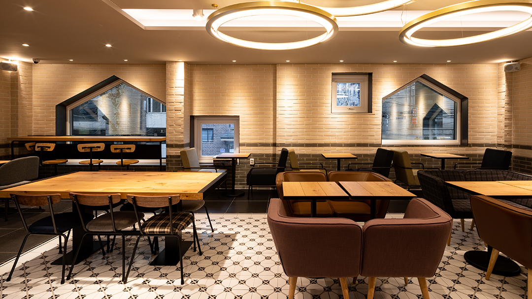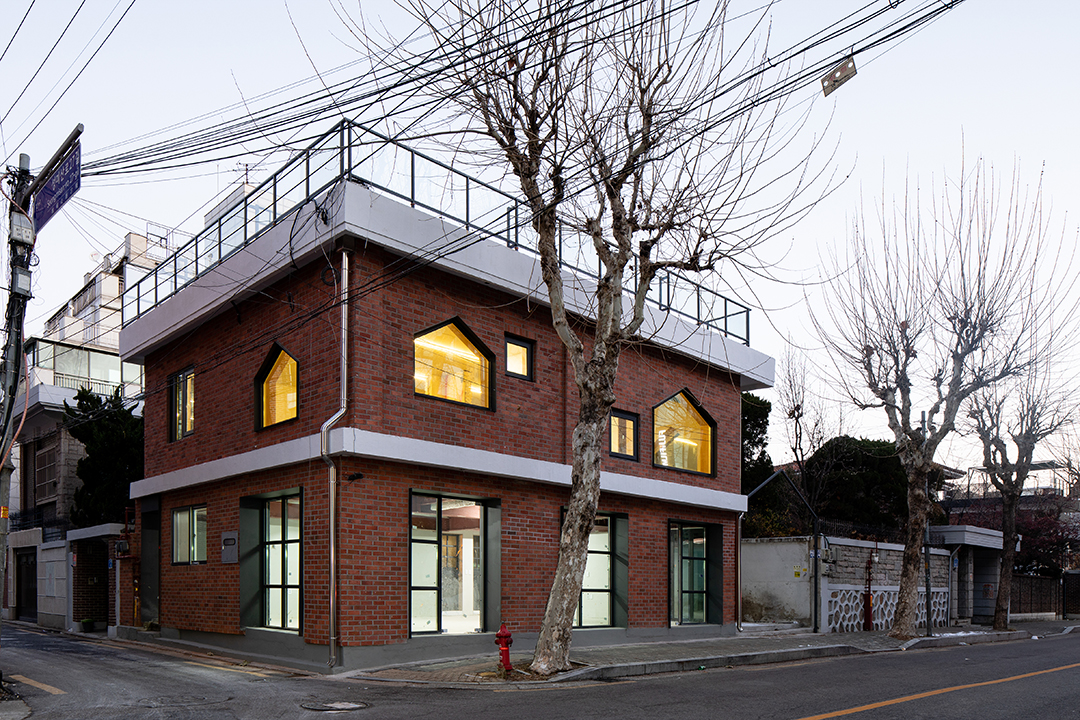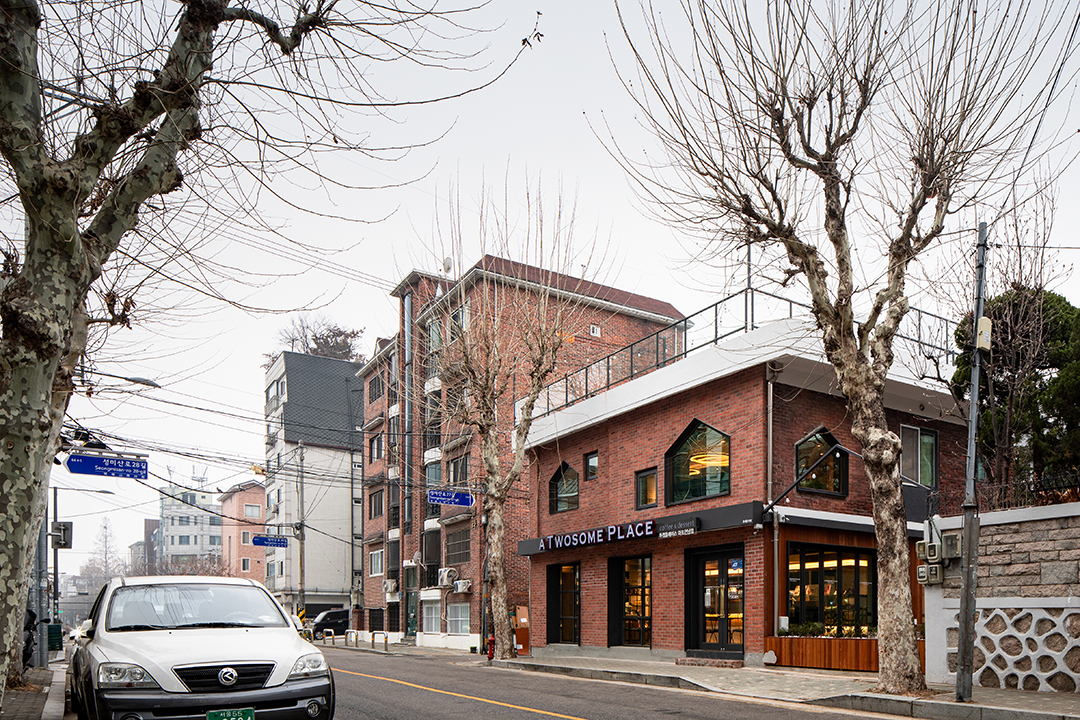 마포구 연남동 경의선 숲길 인근 숲세권 주거지역에 있는 작은 주택을 카페로 리모델링하는 작업이었다. 경의선 숲길은 경의선 지하화에 따라 생긴 유휴 철도부지를 서울시가 한국철도시설공사로부터 임대하여 공원으로 탈바꿈시킨 서울 도시재생 프로젝트의 일환이다. 녹지가 부족했던 마포구에 활력을 불어넣어 주었고 연남동 구간은 가장 많은 사람이 오가는 곳이 되어 공원을 따라 새로운 상권이 형성되어 지역상권에 큰 기여를 하고 있다. 공원을 따라 무분별한 개발로 지역의 본모습이 사라지는 것을 우려하며, 기존 2층의 작은 주택 형태와 재료를 유지하면서 카페로 사용할 수 있도록 대수선과 용도변경 인허가를 진행했다. 벽돌구조였던 건물은 철골보강을 통해 실내 칸막이벽들을 모두 철거하여 상가에 적합하도록 구성했다. 1층은 가능한 골목길을 향해 개방감 있도록 큰 창을 계획하였고, 2층은 오각형과 정사각형의 창이 랜덤하게 놓여져)카페 좌석마다 서로 다른 풍경을 담아내고자 하였다. 카페로 이용하기에는 층고가 낮고 공간은 좁았지만 포근한 마당과 하늘을 향한 루프탑 등 외부공간을 짜임새 있게 잘 활용하였다.