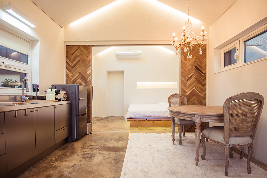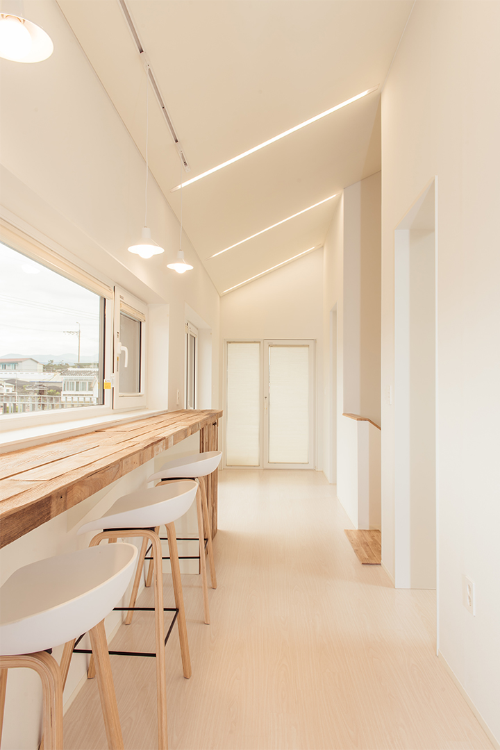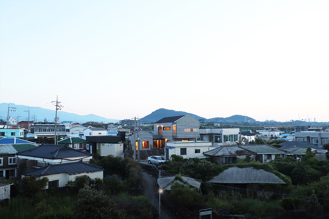 음악에서 ‘느리게’란 뜻의 렌토(Lento)라는 단어를 붙여서 이름 지어진 느리고 여유로운 삶을 지향사는 사람들을 위한 건물이다. 제주 동북쪽 해안가에 구불구불 휘어진 돌담길과 저층 소규모 건물들이 모여 있는 작은 어촌마을 신촌리에 지어진 건물로 마음이 편안해지고 정겨운 제주 취락지의 정서를 담아내고 싶었다. 전통건물처럼 큰 규모가 아니라 작은 매스의 조합으로 채나눔(안거리, 밖거리)으로 공간을 구분하고 따로 또 같이 생활을 영위하는 건물이 되었다. 두 매스의 가운데에는 다이닝공간을 배치하여 폴딩도어를 활짝 열면 외부 안마당으로 공간이 확장되도록 하였다. 돌담으로 둘러싸인 대지에는 마을과 바다 풍경을 담아내는 안마당, 후정, 테라스, 발코니 등 외부공간을 계획하여 실내외가 연계되도록 하였으며, 동선의 흐름이나 시간의 연속성에 따라 변화되는 시퀀스를 만들고자 했다. 박공지붕을 갖는 분절된 형태의 건물 매스, 소박하고 차분한 느낌의 회색 시멘트 와이트벽돌 외장재 마감으로 마을과 조화로운 건물을 계획하였다.