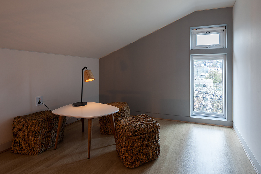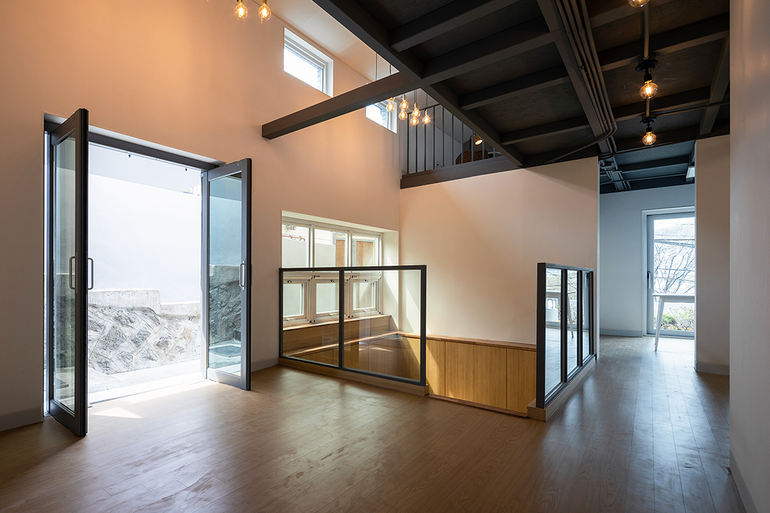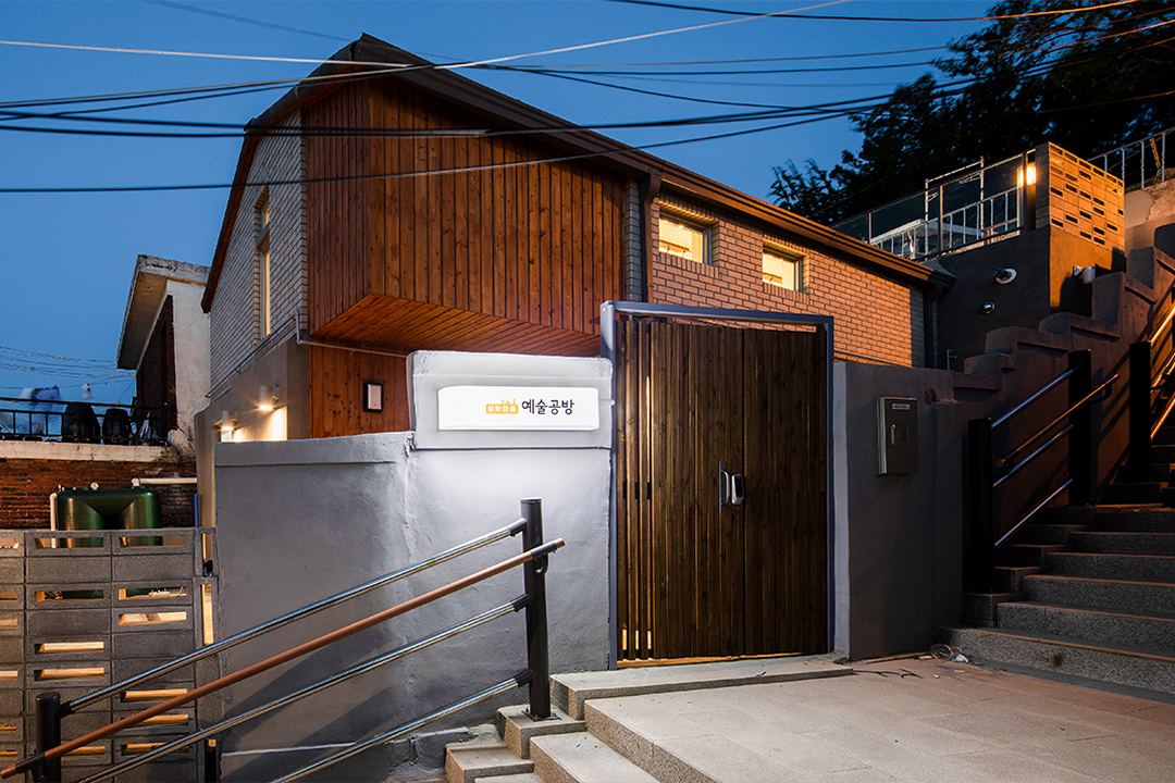 369성곽마을 예술공방은 예술인들이 실제 거주하면서 창조적 예술작업을 할 수 있는 장소이다. 60여년 된 낡은 주택을 리모델링한 이곳은 예술인들이 자기만의 고유한 작품 활동을 할 수 있는 작업장으로 쓰일 예정이다. 고즈넉한 환경 속에서 일상생활을 하며 예술 창작활동을 펼칠 수 있도록 작업공간과 함께 숙식공간이 마련되었다. 지역예술가의 작업과 주민들과의 교류는 369성곽마을의 문화, 예술적 가치를 높이는 역할을 할 것이다. 대지의 경사를 따라 지어진 60여년 된 기존 주택이 가졌던 다양한 레벨을 계획에 반영하여 입체적 공간감을 갖도록 하였다. 가파른 계단과 옥상 테라스는 마을풍경을 볼 수 있는 전망대의 역할을 하는 동시에, 담장에 게시된 예술가의 작품을 볼 수 있는 옥외 전시공간이 될 것이다.