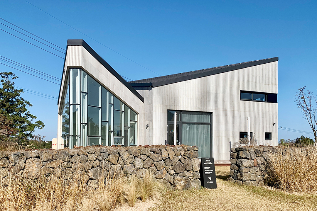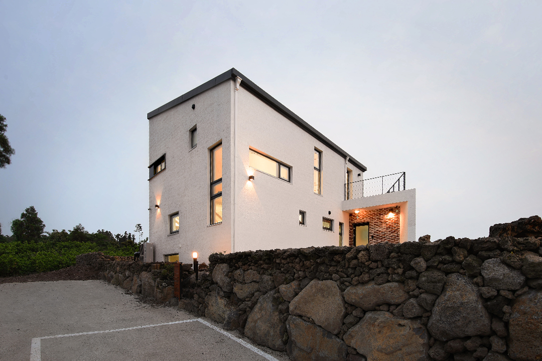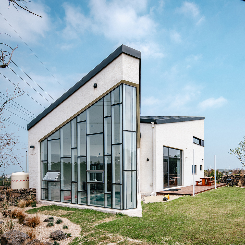 제주 동부 선흘리 마을 안쪽으로 들어가 있는 경사지 귤밭에 가족들의 특별한 기억을 만들 수 있는 2층 독채 키즈펜션을 계획하였다. 아이들의 공간형태에 대한 상상력을 더해주기 위해, 건물은 두 개의 매스가 맞물려 있는 다각형의 독특한 형태로 구성하였다. 한쪽은 외부풍경을 담아낼 수 있도록 투명한 유리재로 된 계획한 실내수영장 공간이고, 다른 한쪽은 각종 실내놀이와 숙박의 겸용공간이다.