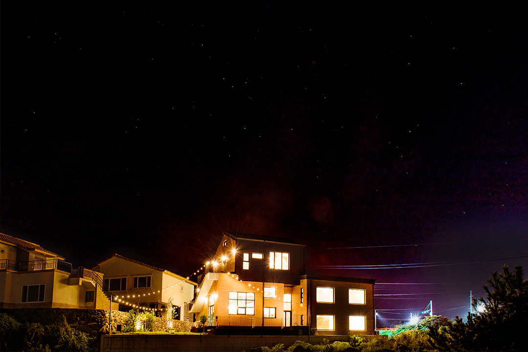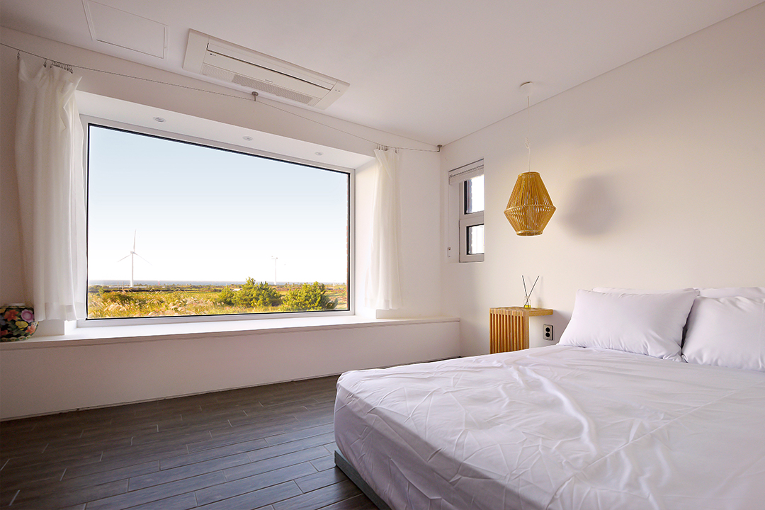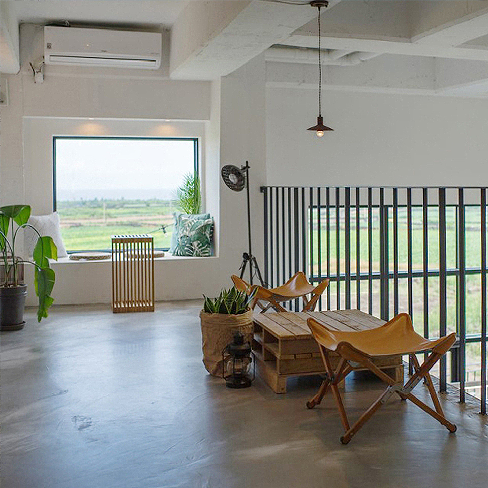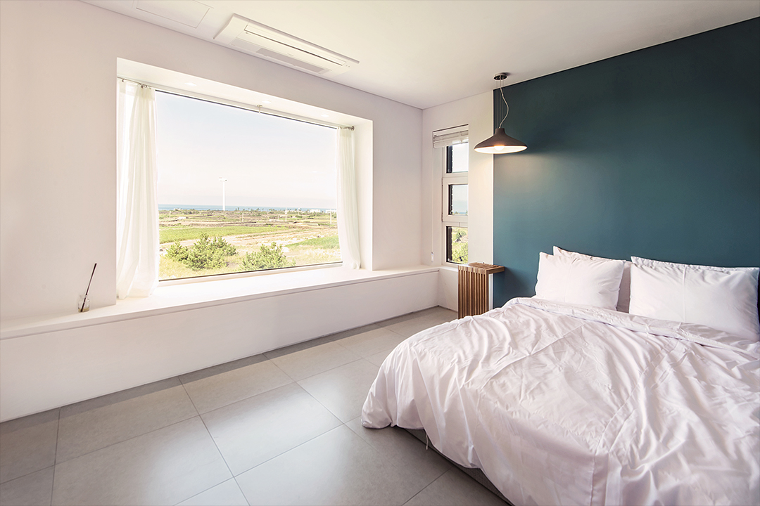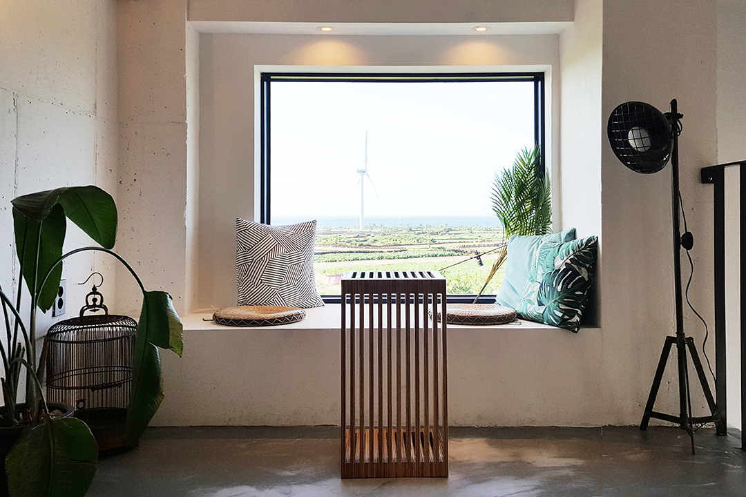 인근에서 제주 동쪽 해안가 농경지 위 친환경 풍력발전기가 돌아가고 그 너머 김녕바다의 수평선이 보이는 건물이다. 개별 테마를 갖는 4개실(White, Ethnic, Brick, Green)의 감성숙소와 개방감 있는 스튜디오카페, 편안한 단독주택이 결합 되었다. 사진작가와 디자이너 부부가 거주하는 곳으로 반려견과 함께 건물에 머무르며 직접 스테이와 스튜디오카페를 운영하고 있다.