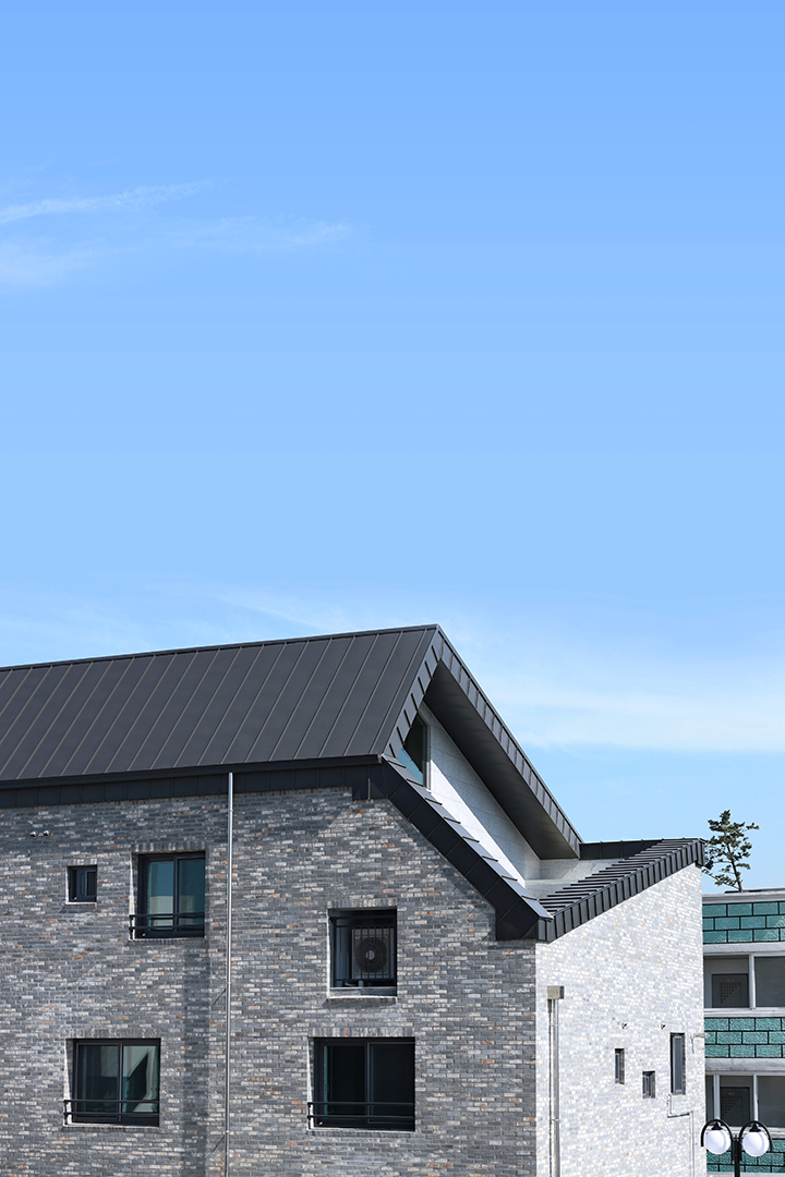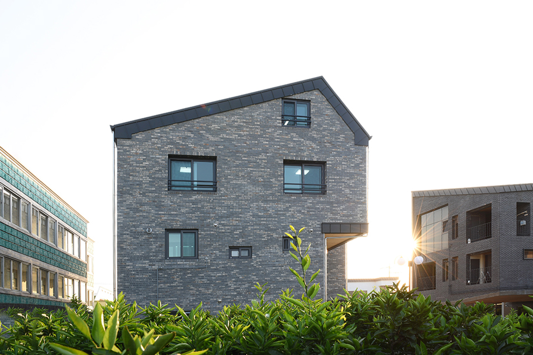 특히 최상층 외부 공간에 마당과 담장을 계획하여 포근하면서도 여유가 있는 개인 안뜰을 만들어주고자 했다. 그리고 이 최상층 안뜰의 담장과 다락의 지붕을 연결하는 대각선의 선형의 흐름을 디자인 포인트로 만들었으며, 건물을 바라보는 각도에 따라 건물이 다양하고 역동적인 자태를 드러내도록 설계하였다.