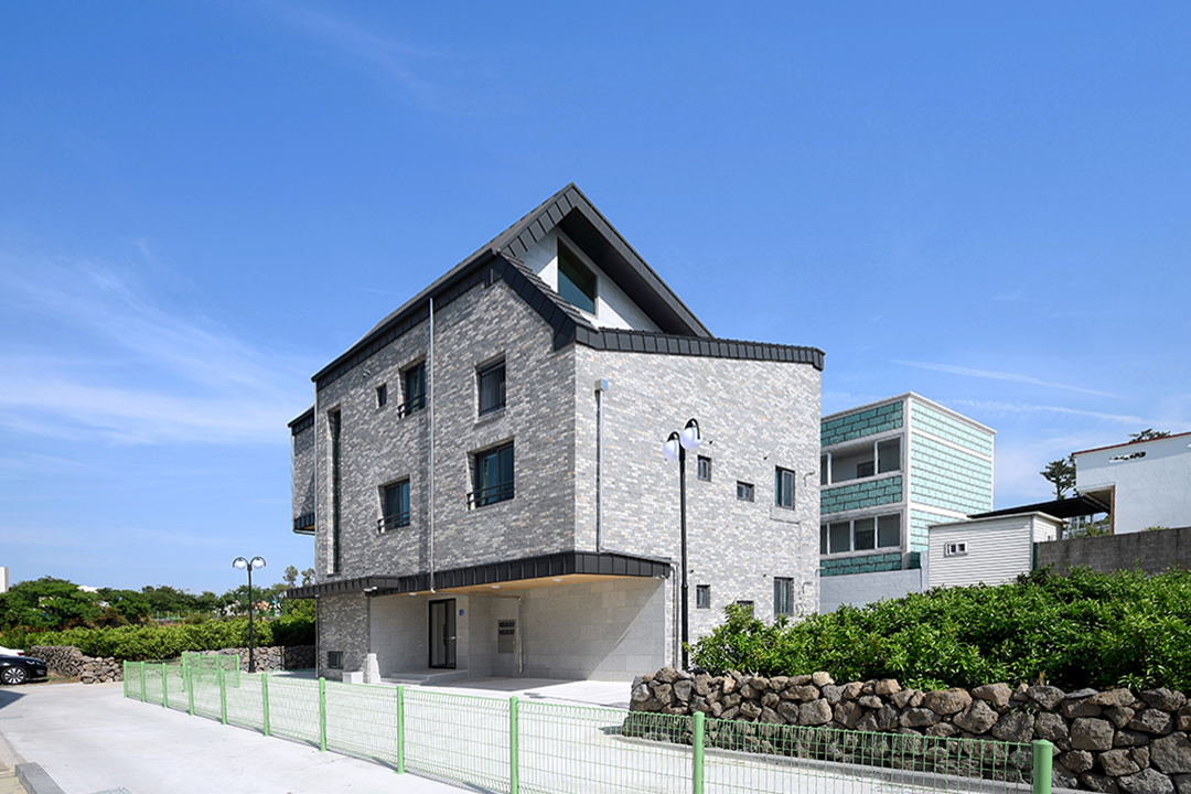 제주시 오등동에 위치하여 젊은 청년이나 신혼부부의 임대세대를 겨냥한 총 6가구가 구성된 다가구주택이다. 1층과 2층은 임대인이 몸만 들어와 살 수 있도록 모든 기기와 가구가 이미 컴팩트하게 갖춰진 원룸과 투룸으로 구성된다. 3층은 아이가 있는 주인세대가 살게 될 공간으로 공간의 입체감을 담아내도록 설계했다.